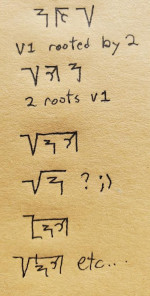 floor, mod, round, aprox equal(a rounded number) no bedmas, just left to right, except for scinote I admit bedmas helps hide brackets.. just like root and fraction symbols help hide brackets, or how the expression in a power is calculated before the power to hide brackets. Uscript doesn't use bedmas as a 'braket-hiding-tool', because that is a very human, historical, and culture specific system. admittedly the hidden brackets in roots, powers, and division are visually elegant, but that's not true for bedmas in general. Uscript sticks with sequential operations and brackets... we will find other ways to "hide brackets" (more visual and intuitive ones, akin to division, powers and roots in our current system), This will also provoke more divergence from our current systems, representation, and thinking. |